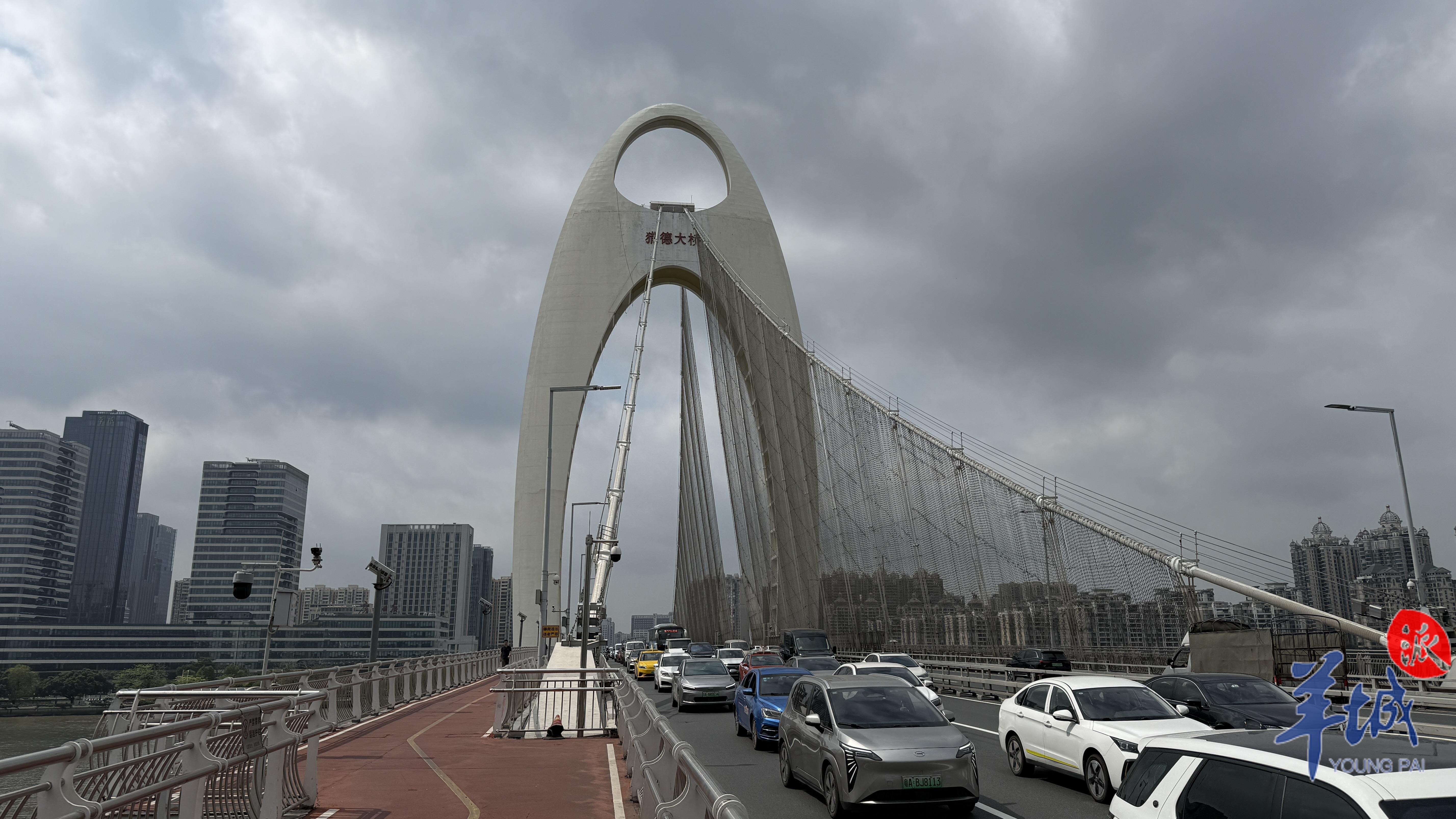 4月22日早晨,途经市民发现猎德大桥桥顶有人员活动,疑似从猎德大桥缆索爬上桥顶。在22日早高峰期间,猎德大桥一度实施交通管制。