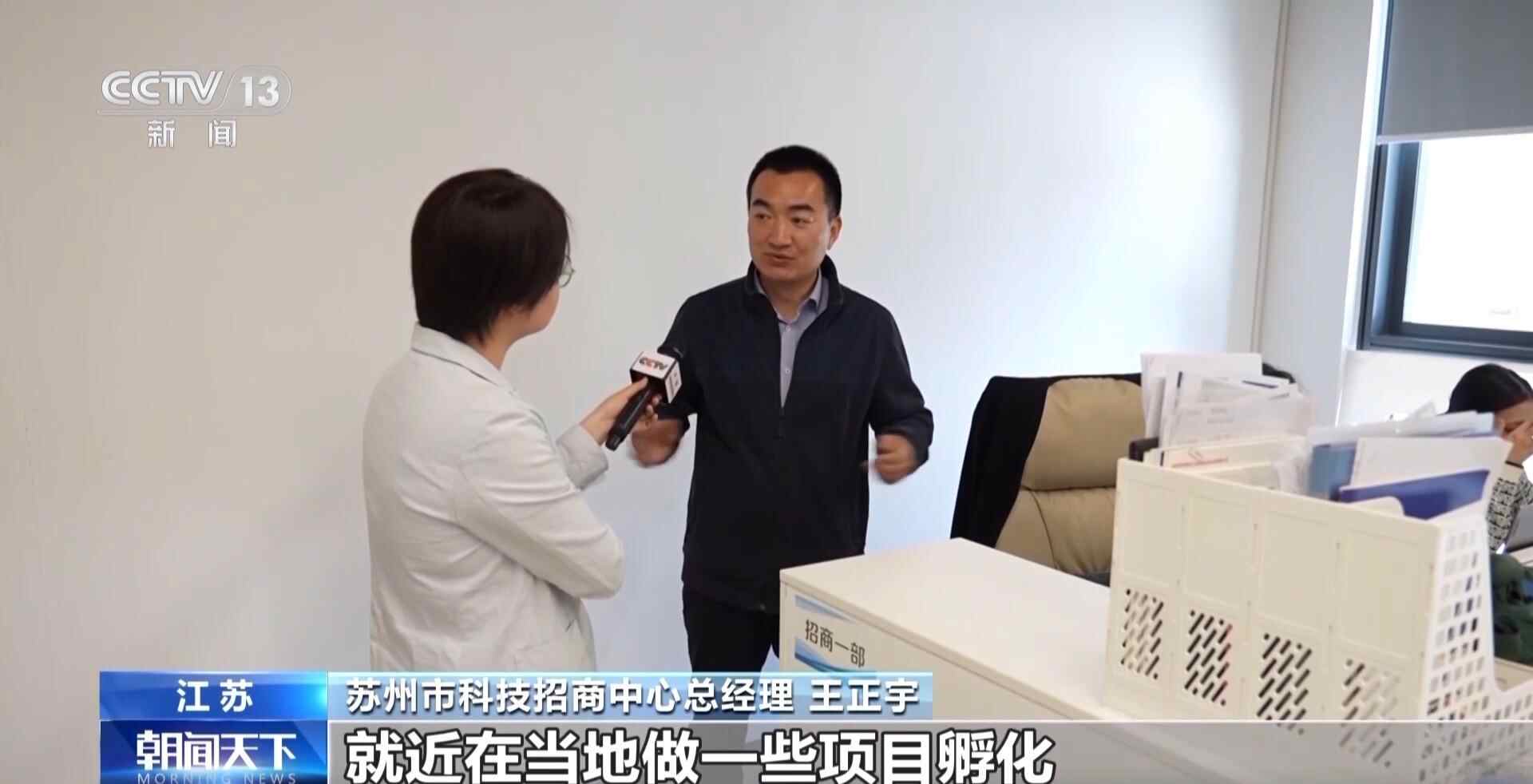 苏州市科技招商中心总经理 王正宇:方便这些高校的老师跟研究生,就近在当地做一些项目的孵化。我们匹配一些载体、政策,包括资金的支持,条件成熟的时候,我们再让他到苏州来落地发展。