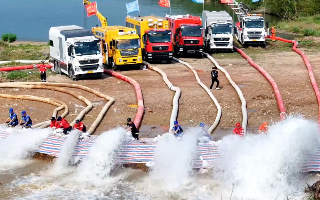 值得一提的是,此次演练突出科技赋能与实战导向,集中展示智能排涝机器人、子母式排涝车、垂直供排水抢险车等高效装备联合作业。演练共投入无人机、直升机、排涝车、冲锋舟等装备2000余件套,参与人员980余人。