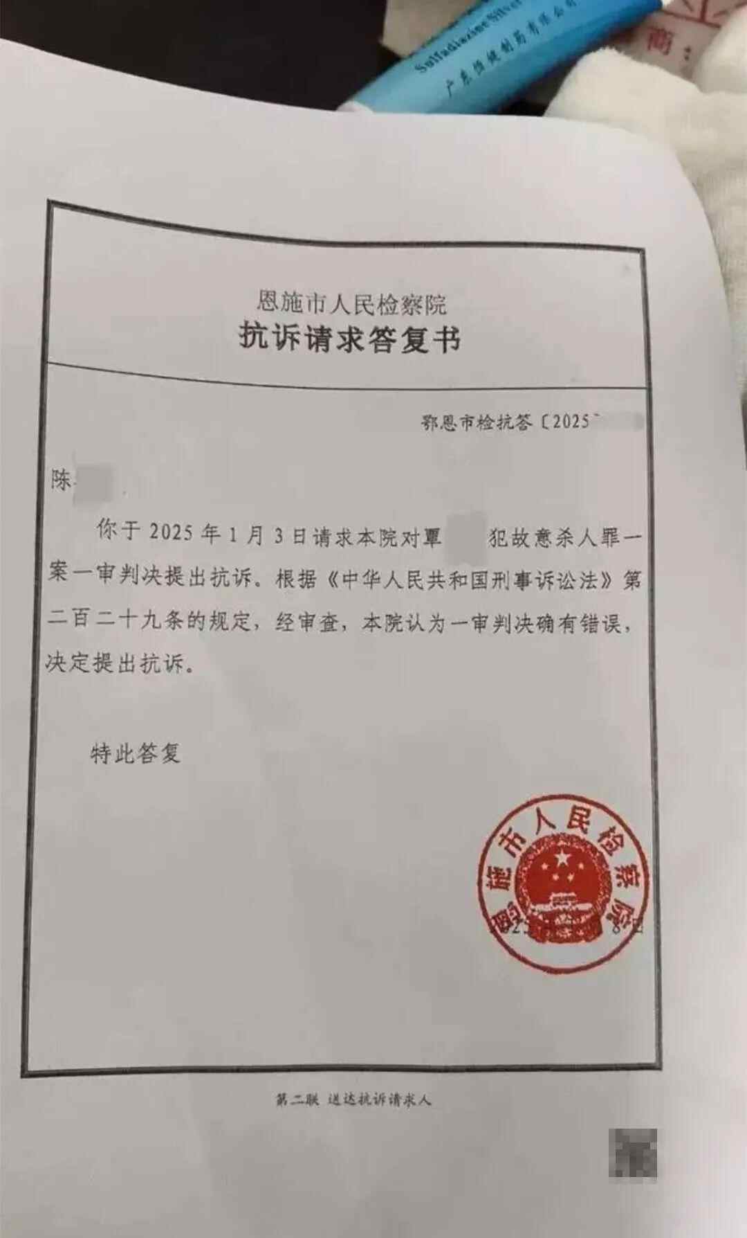 陈女士不满一审判决结果,向检方申请抗诉。今年4月初,她收到出庭通知书,该案二审将于4月22日上午9时在恩施州中级人民法院公开开庭审理。“我希望在一审之上,能够重判覃某某,我内心希望他死刑,但我还是尊重法律。”陈女士说。