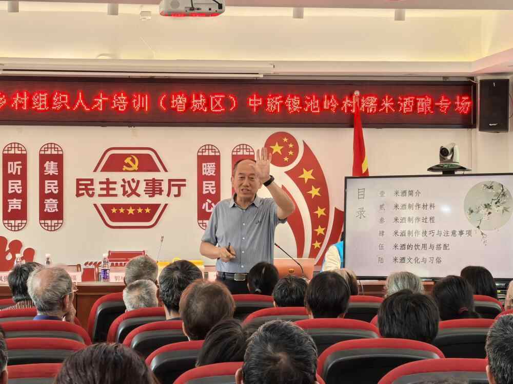 最后,他鼓励村民们大胆创新,将年轻人喜爱的各种水果、花卉与糯米酒酿相结合,将池岭村的糯米酒酿推向更广阔的市场。村民们纷纷表示,将把所学知识运用到实践中,为池岭村糯米酒酿产业添砖加瓦。