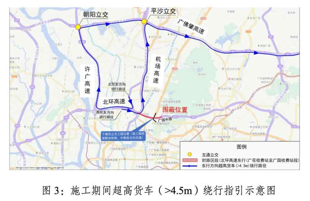 4月22日,记者从广州市交通运输部门获悉,因施工需要,广园路下塘西路立交大修工程计划于4月26日凌晨0:00-6:00开展跨北环高速主梁南跨拆除围蔽施工。期间,需临时中断北环高速(广花出口至广园路入口路段)东行方向和广园中路(广州中医药大学北门至政通路路口路段)东行方向交通,请过往车辆注意绕行。