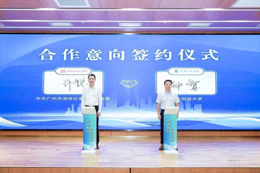 4月22日,中共广州市海珠区委社会工作部与广东财经大学合作意向签约仪式暨校地共建项目启动仪式,在广东财经大学广州校区图书馆国际学术报告厅举行。