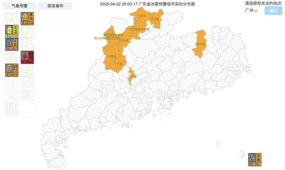 广东又双叒叕要“落雨大”了!汛期首场暴雨天气,已在22日开启“前奏”。当天午后起,强对流云团影响肇庆、清远、广州北部、韶关等地,封开、怀集、德庆、三水、广宁、四会、乐昌、阳山、乳源、连山连南、仁化等地一度需要发布冰雹橙色预警信号。