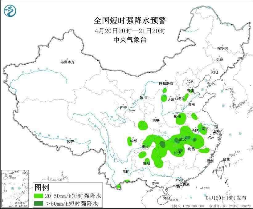 预计,20日夜间到21日白天,贵州东部、重庆东部、湖北东部和南部、湖南北部、江西北部、安徽南部、江苏西南部、浙江中部、福建西北部以及河南东南部、河北东南部等地的部分地区有大到暴雨,其中,湖北东南部、湖南北部等地局地有大暴雨(100~130毫米)。
