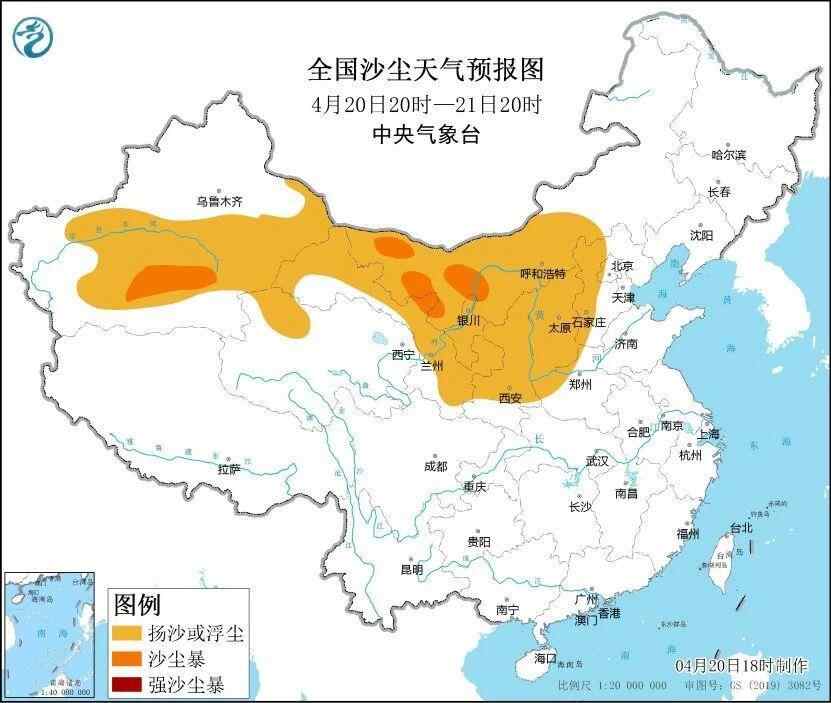 20日夜间至23日,北方地区有一次较大范围沙尘天气过程,新疆东部和南部、西北地区大部、内蒙古中西部、华北、黄淮西部、四川盆地北部、江汉等地有扬沙或浮尘天气,内蒙古西部、甘肃西部、新疆南部的部分地区有沙尘暴。