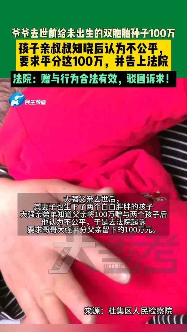 近日,安徽发生一起因遗产分配引发的家庭纠纷案件,引发社会关注。老强(化名)因突发疾病住院治疗,在生命垂危之际,决定将自己积攒的100万元存款赠予即将诞生的两个孙子。据悉,老强的大儿媳当时已怀有双胞胎,因对隔代后辈的深厚情感,老强对这两个尚未谋面的孙子满怀喜爱与期许。