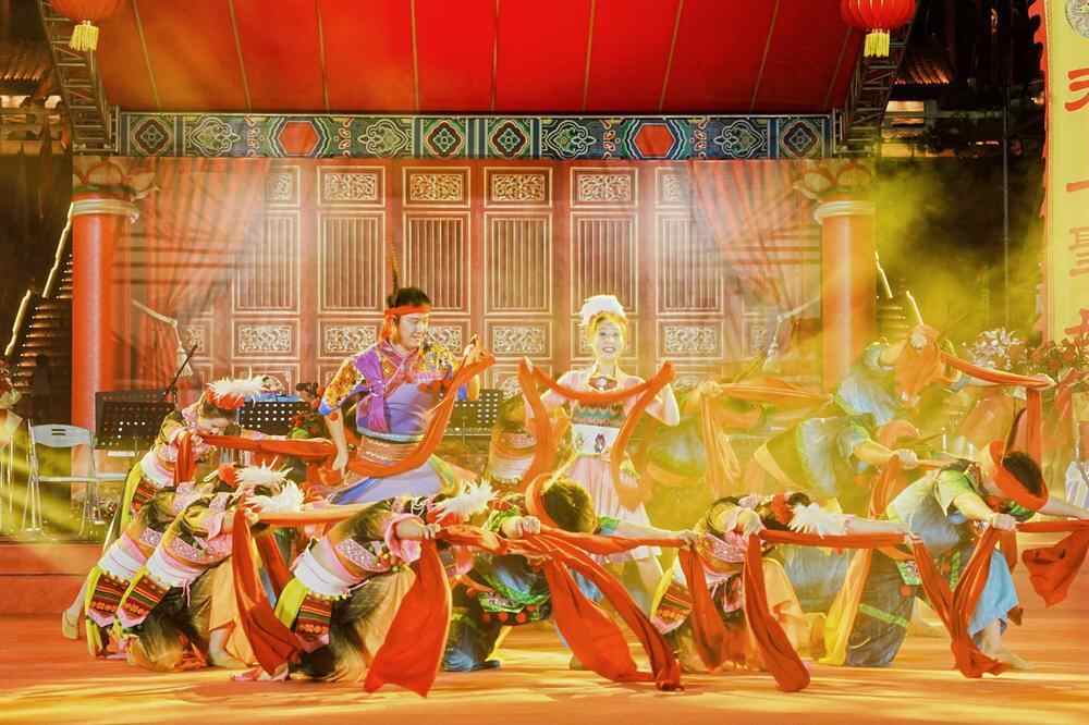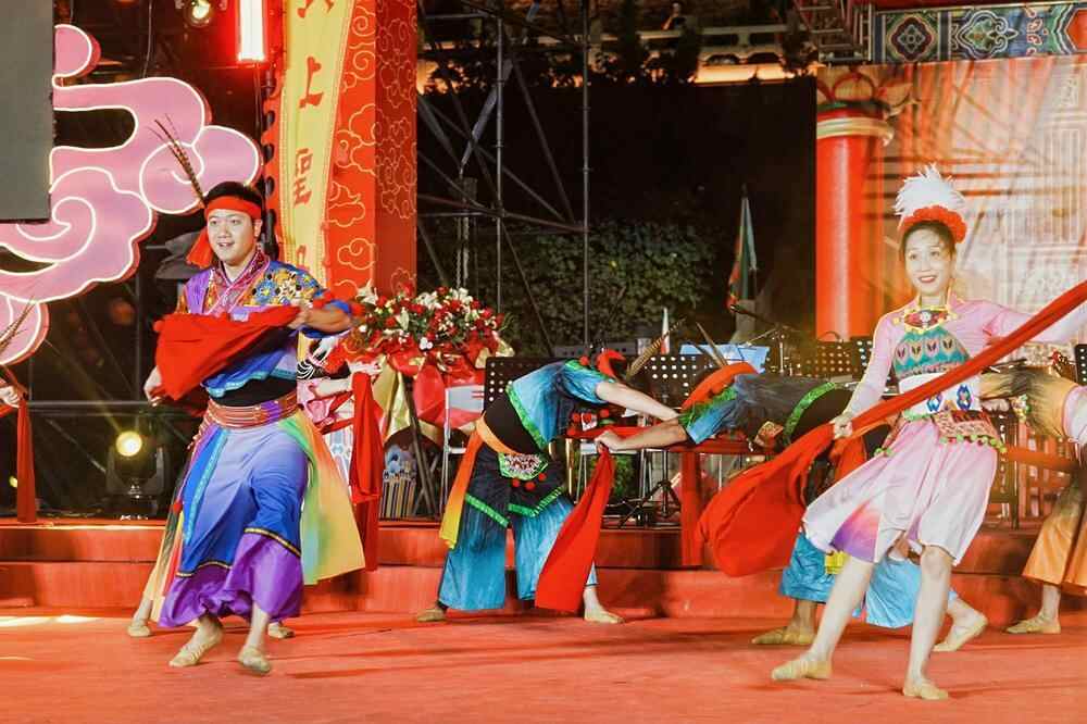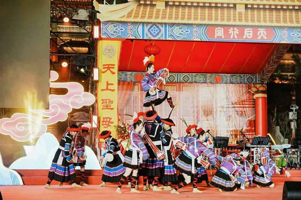 开幕式上,一出出精彩纷呈的歌舞演出轮番登台,引领观众踏入妈祖文化世界。《乐舞颂天妃》以民乐为弦,舞蹈为笔,舞者身姿轻盈如燕,与悠扬乐声共舞,生动勾勒出妈祖“立德、行善、大爱”的崇高精神,水袖翻飞间,千年信俗焕新颜;瑶族舞蹈《鼓从瑶山来》,激昂鼓点与矫健舞步交织,传递出瑶族人民对美好生活的无限憧憬,为开幕式添上了浓墨重彩的一笔;歌伴舞《天下妈祖》以“妈祖信俗”为魂,由青年歌唱家深情献唱,伴舞团如海浪翻涌,再现妈祖文化跨越时空的魅力。