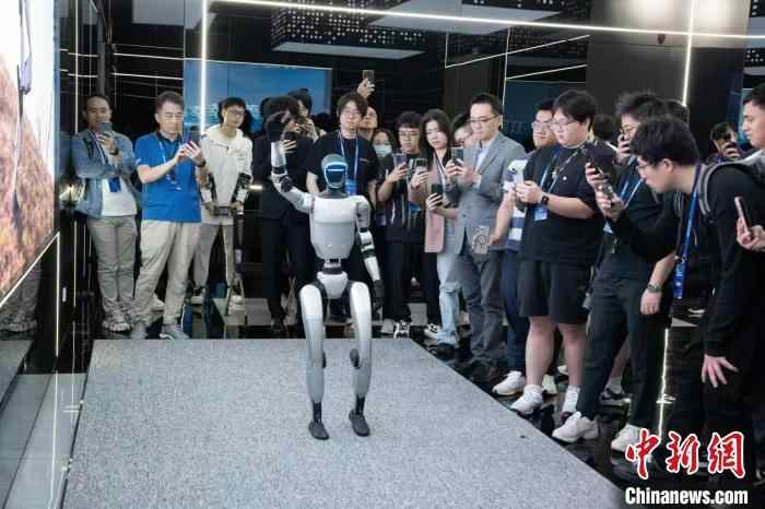 4月18日,港澳青年在杭州高新区(滨江)展厅观看宇树机器人表演。 吴君毅 摄