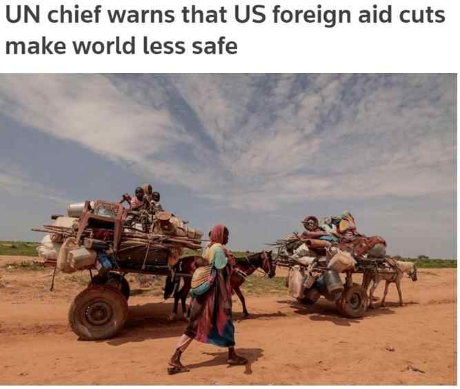 联合国秘书长古特雷斯此前曾表示,美国大幅削减对外援助无异于一场人为制造的“人道主义地震”,将对世界上最弱势群体造成严重伤害,不仅让世界更不健康、更不安全,也有损美国自身利益。