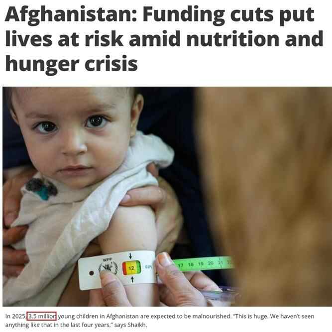 美国此前承担了阿富汗国际人道援助资金的43%。然而,其资金链的突然断裂导致当地关键人道主义项目被迫停摆,食品供应锐减。