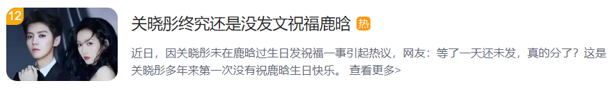 4月21日,话题“关晓彤终究还是没发文祝福鹿晗”冲上热搜榜。