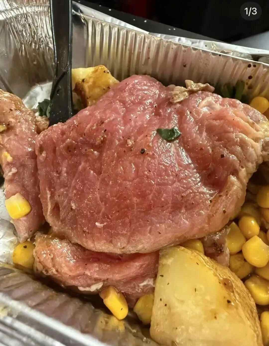 对于网友称牛排是全生的,商家称,“这个她只是看了另外一面,我们是做七分熟的嘛。因为那个铁板温度和那个可能出来的那个盒子的温度不一样,导致口感会生,和他们的理想的口感可能稍微差一点点吧。出餐肯定会检查的呀,牛排比如说你要五分的、三分的,可能人家吃生肉都是有可能的对吧。我们一般做的都是七分,可能顾客可能觉得生吧,个人的口感可能都是不一样的。”