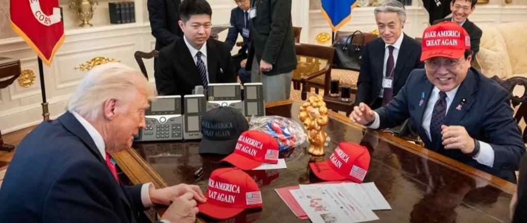 全日本新闻网在18日发布的新闻报道中,披露了日前美日关税谈判的细节。日本贸易谈判代表、经济再生大臣赤泽亮正在谈判结束后,收到了一顶特朗普亲笔签名的红色“MAGA”(让美国再次伟大)帽子,赤泽亮正则送给特朗普一款大阪世博会吉祥物“脉脉”造型的金色存钱罐。