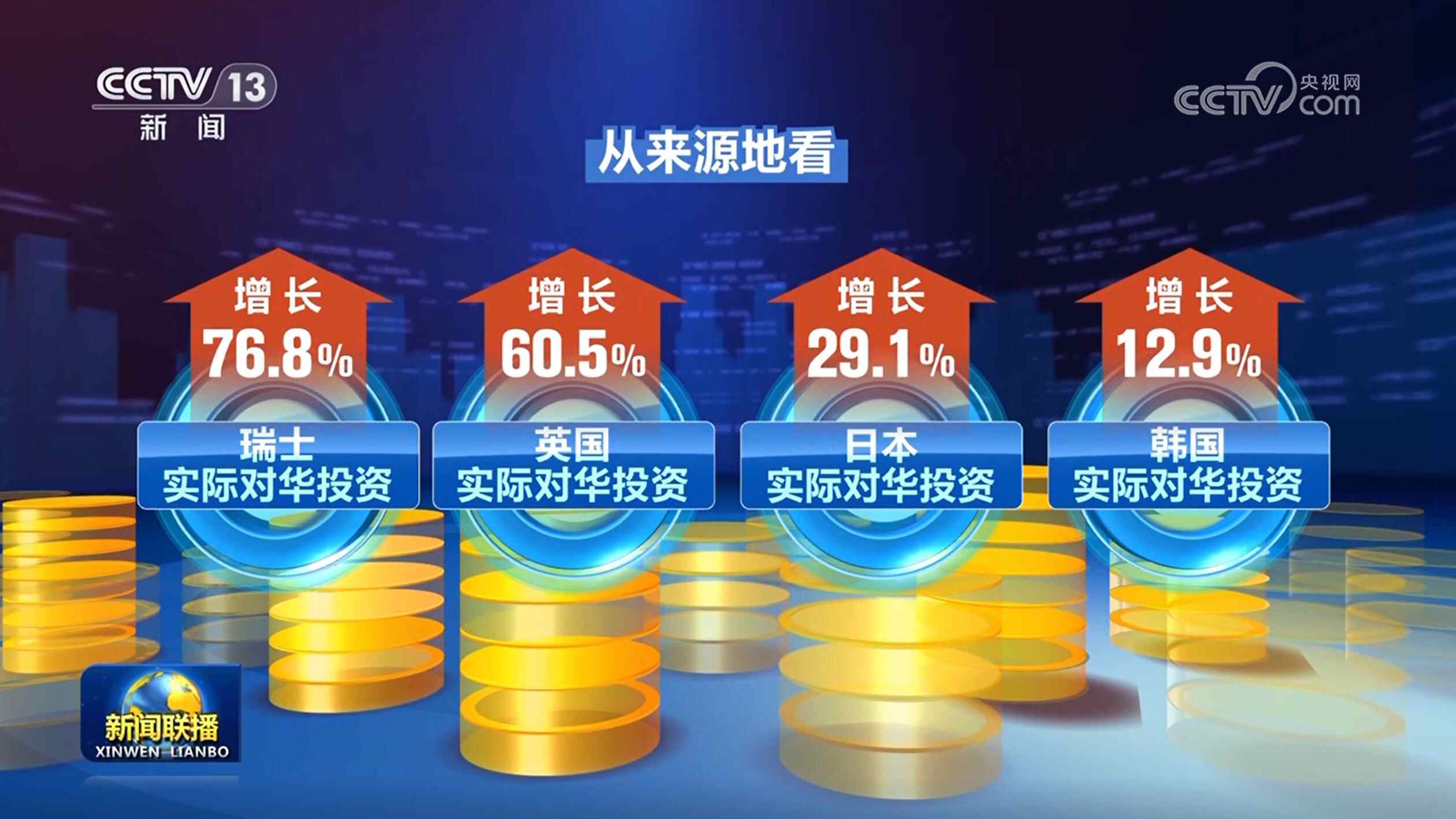 从来源地看,东盟地区实际对华投资增长56.2%,欧盟地区实际对华投资增长11.7%,瑞士、英国、日本、韩国实际对华投资分别增长76.8%、60.5%、29.1%和12.9%。