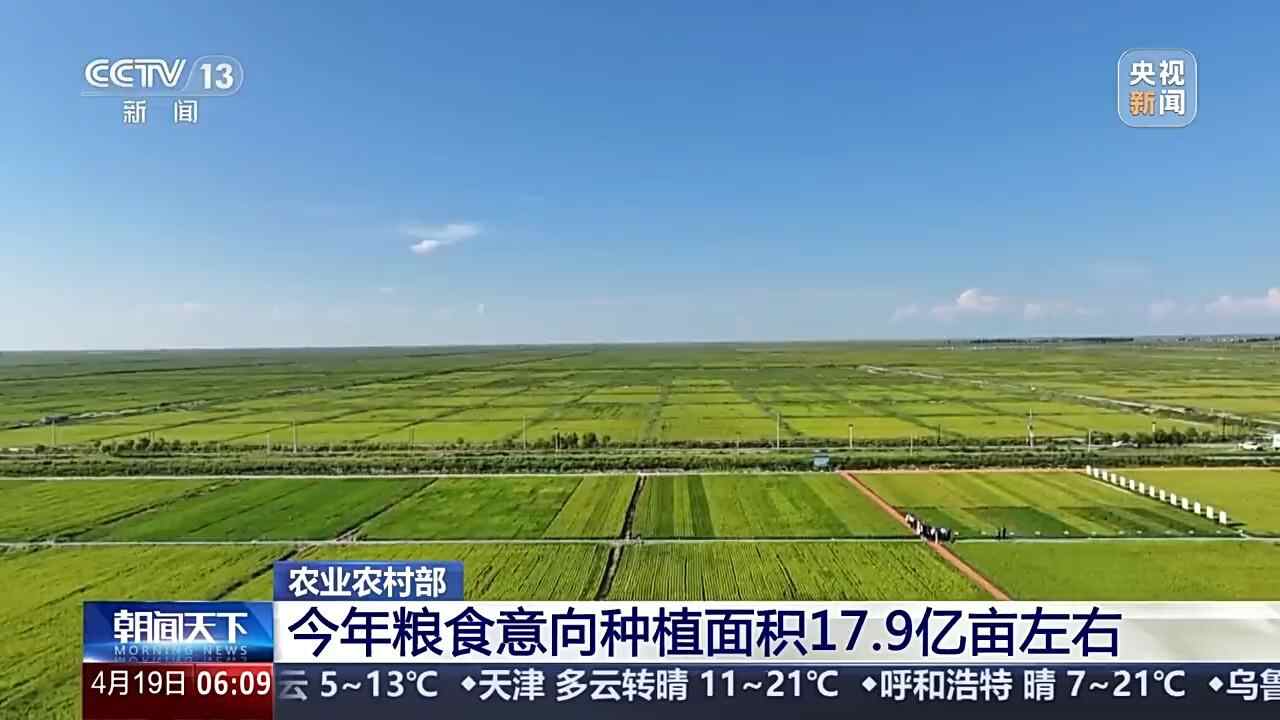 今年粮食意向种植面积17.9亿亩左右