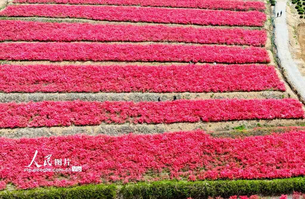 近日,山东青岛西海岸新区琅琊镇数百亩杜鹃花迎春绽放,吸引游客纷至沓来。张进刚摄(人民图片网)