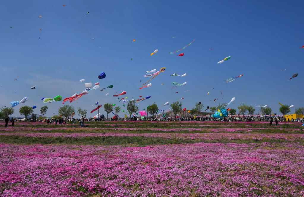 4月19日,第42届潍坊国际风筝会在山东省潍坊市开幕并举行万人风筝放飞活动。新华社记者 徐速绘 摄