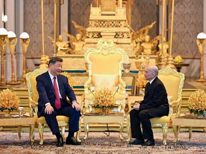△4月17日,柬埔寨国王西哈莫尼同习近平主席在金边王宫举行会见。