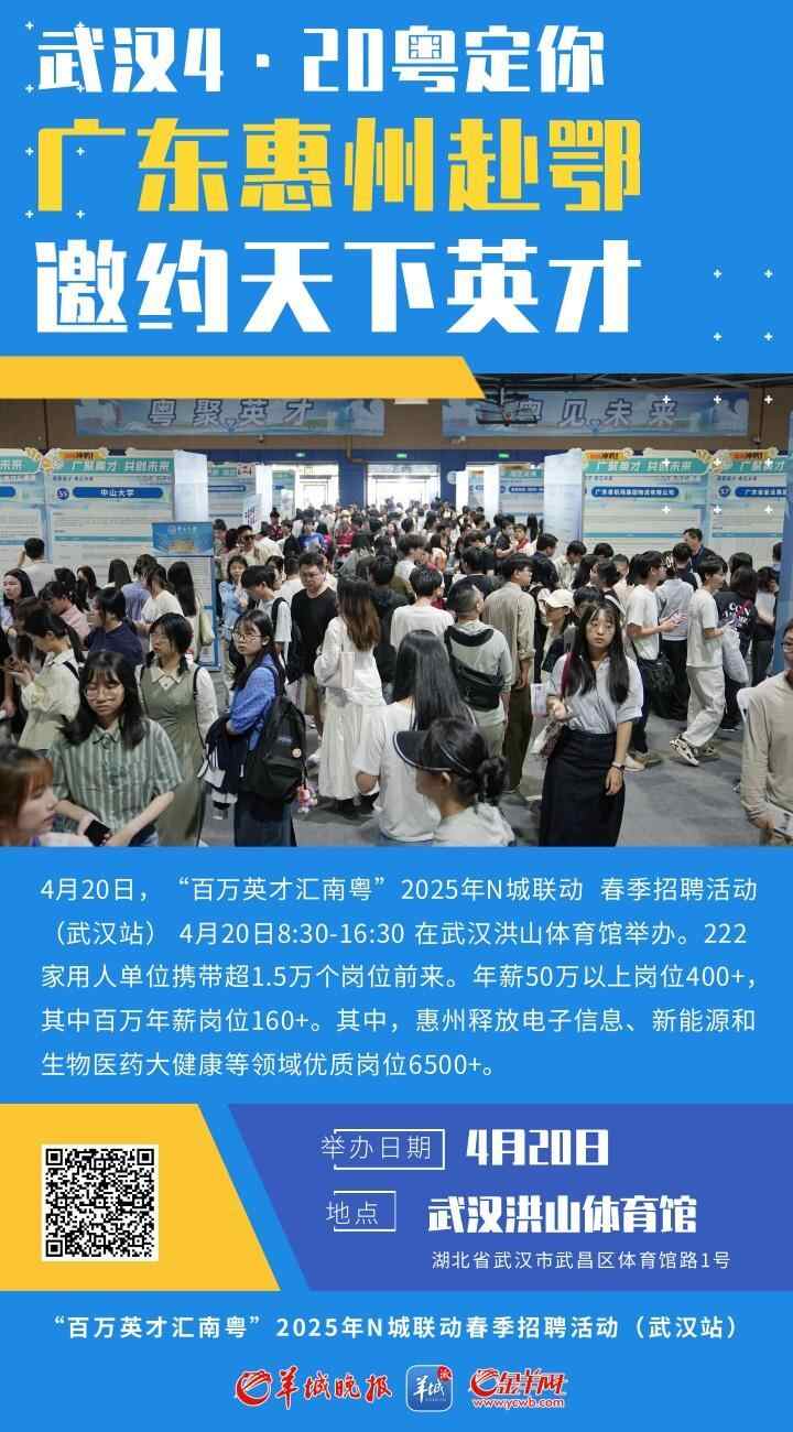 4月20日,武汉洪山体育馆内热潮涌动,“百万英才汇南粤”2025年N城联动春季招聘活动(武汉站)盛大启幕。