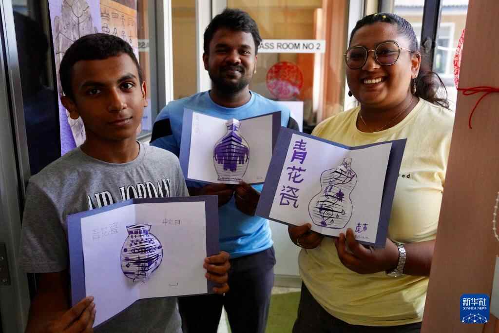 在学习制作青花瓷贺卡的课堂上,21岁的阿基拉·恰米卡拉一边描画青花瓷瓶身的弧线,一边将斯里兰卡大象与中国传统纹样填入其中,沿着画纸细细裁剪几道,便制成一张立体贺卡。“我很喜欢中国文化,我想在作品中将中国文化与斯里兰卡本土文化相融合。”他说。