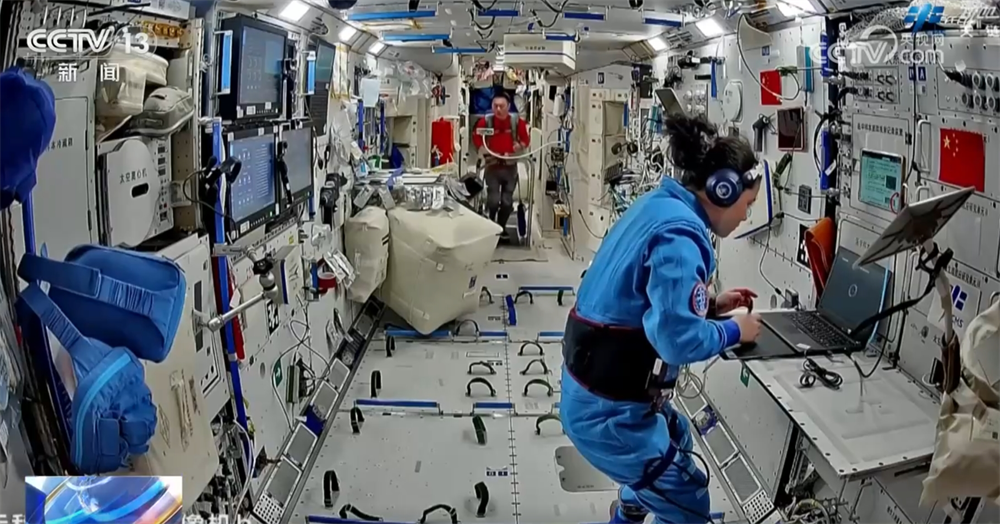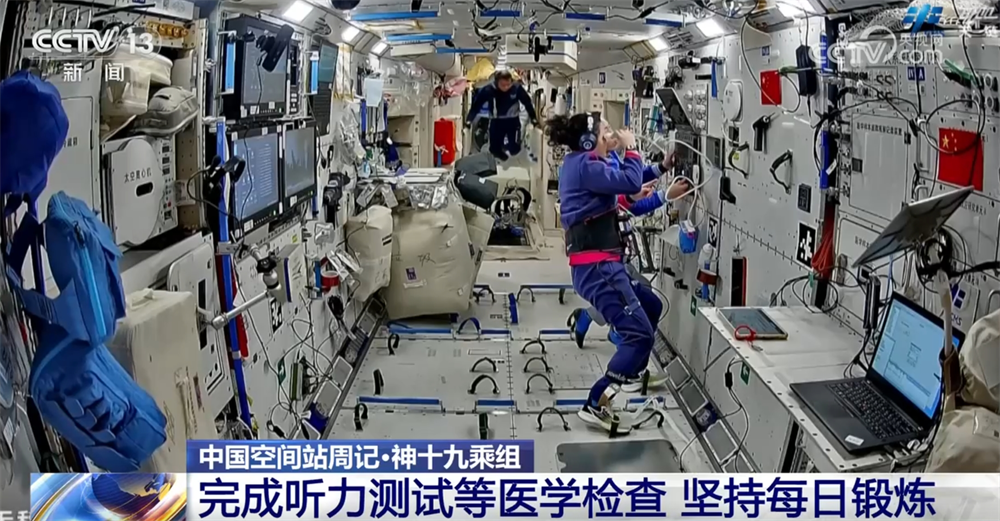乘组完成了听力测试、视功能与经眶B超测量、眼压及眼底检查等多项医学检查。同时,坚持每日在轨锻炼,积极使用仪器设备进行失重防护。