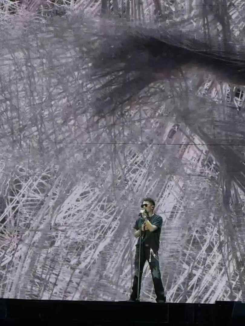 谢霆锋此次演出,未像其他歌手演唱会一样换上各色华服,而是不换装不化妆,全程一套黑色T恤穿到底,用2.5小时狂唱29首歌。