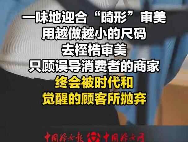 中国妇女报此前发布评论表示,女装尺码越做越小,是在推崇瘦到极致的审美,是在“缩水”本该多样的穿衣自由,是无言中对女生的一种“身材霸凌”。