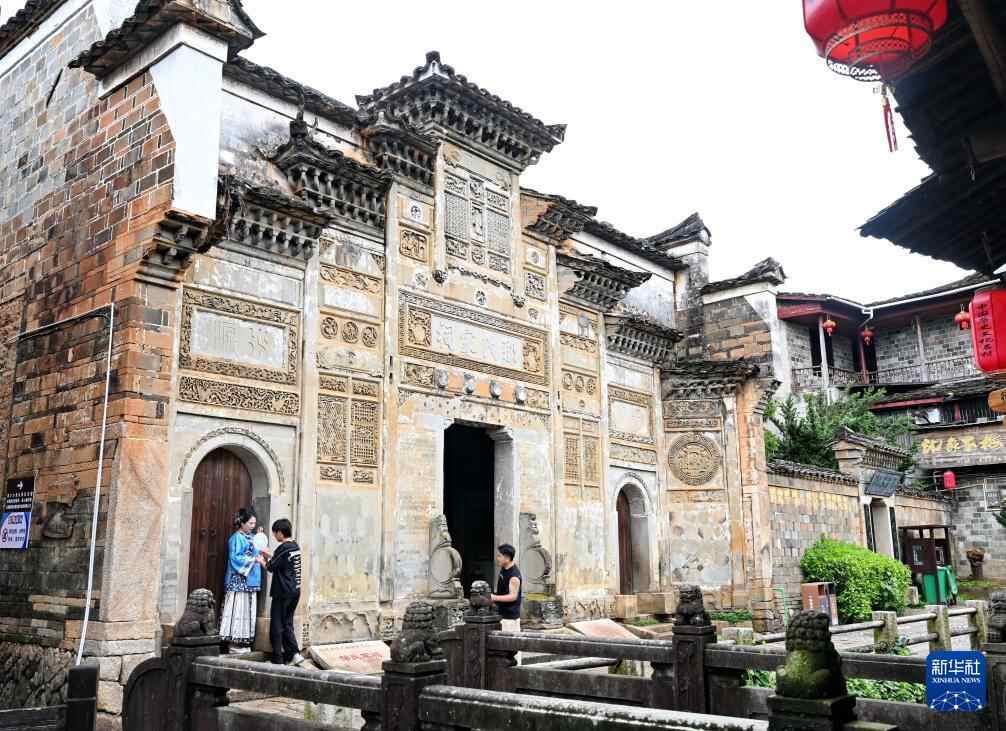 4月23日,游客在下梅村的“西水别业”古建筑参观。