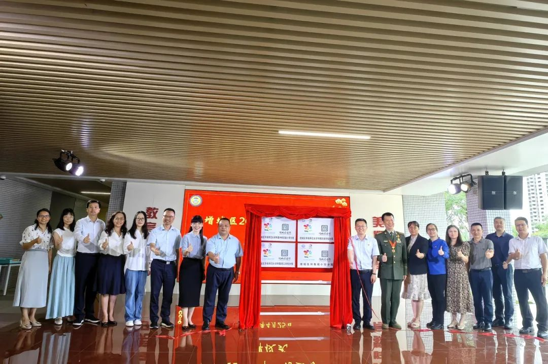 随着红绸揭晓,增城区华南师范大学附属新塘学校、华南师范大学附属增江学校、华南师范大学附属中新实验小学及科教城小学等四校“馆立方”正式启用。