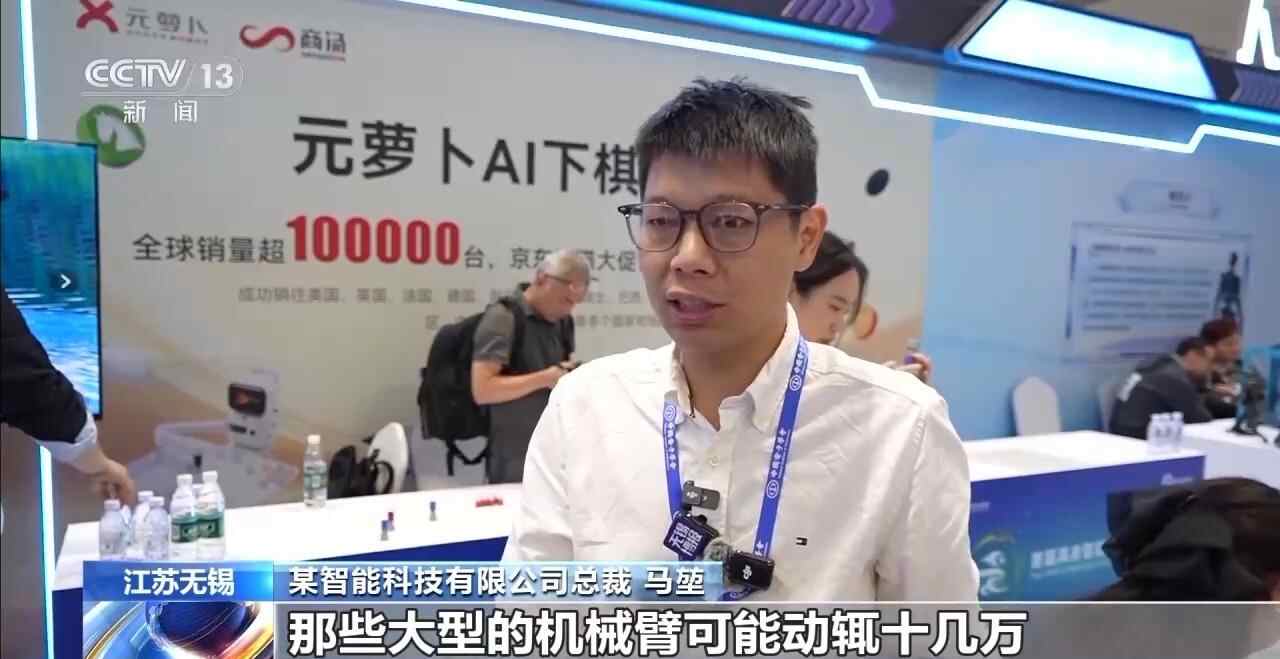某智能科技有限公司总裁 马堃:以往大家能看到会下棋的机器人都是在科技馆,那些大型的机械臂可能动辄十几万,我们通过我们的算法技术把它变成一个小小的东西,然后把价格降到了千元级别,未来我们可能会做更多进入家庭端的机器人设备。