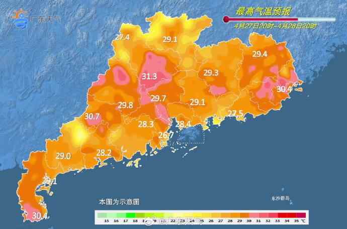 ◆预计,28日,广东阴天间多云,阵雨天气频密,局部大雨伴有雷电。粤西和珠江三角洲南部市县阴天到多云,有阵雨局部大雨伴有雷电,其余市县多云到阴天,有分散阵雨;大部市县早晚有(轻)雾,最高气温将介于28~32℃。