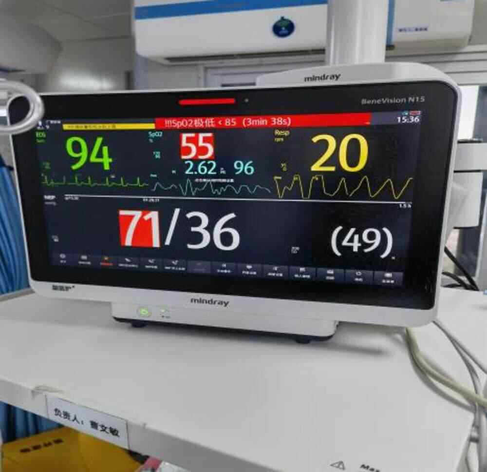 此时,该院急诊科抢救团队已严阵以待,上胸外按压机,气管插管接呼吸机,纤支镜检查,吸出气道内异物(直径约1cm肉末),间隔3分钟肾上腺素1mg推注,多巴胺、去甲肾上腺素、碳酸氢钠注射液……医嘱不断下达和执行,患者心电活动时有时无,并出现持续室颤,除颤仪一次又一次放电除颤。在这场持续一小时的抢救中,医护人员用了20多支肾上腺素,他们凭借着专业的技术和顽强的毅力,不放弃任何一丝希望。所幸,患者最终恢复了自主心率,随后被送往ICU作进一步治疗。