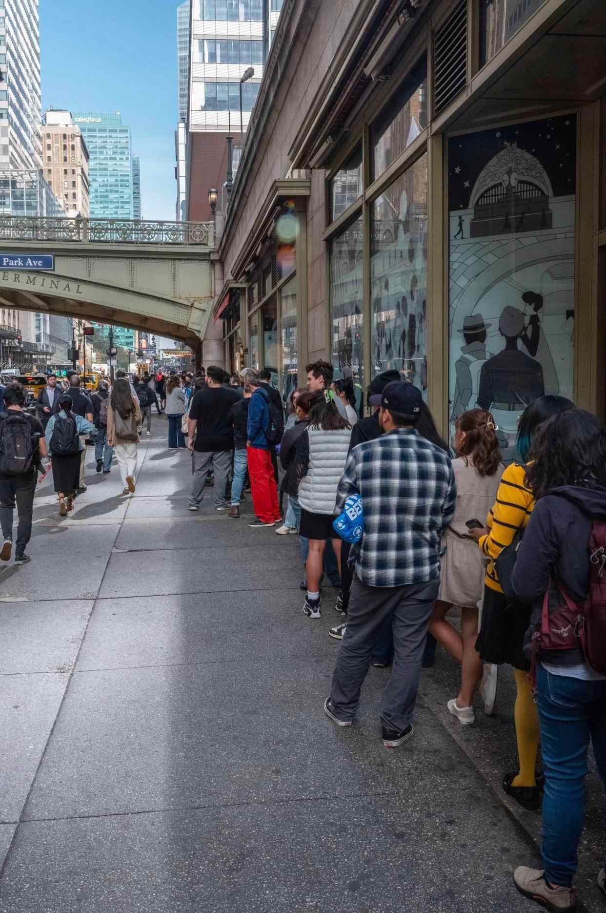 纽约中央车站是美国最繁华的交通枢纽之一,当地时间4月22日,海外科技爱好者们在车站外排起长队,抢购一款能拍摄360度影像、自拍杆可自动“隐形”的国产“黑科技”全景相机。现场的视频显示,凌晨5点,抢购的队伍排到了数百米开外。