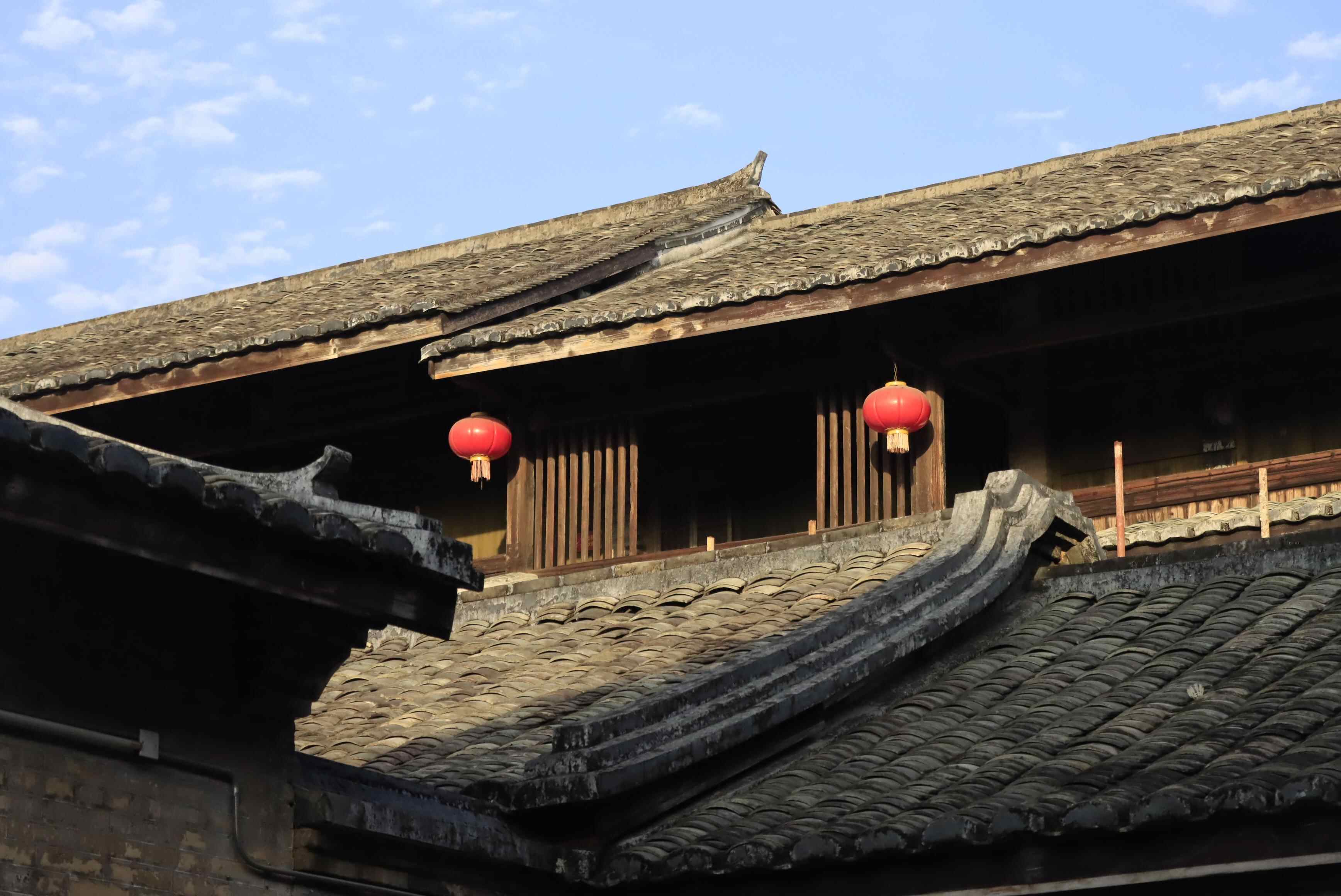 沿楼梯上二楼,木质台阶发出轻微的“吱呀”声响。细看,阶梯衔接处的榫卯结构看似简单,却能承载千斤之力,历经百年仍旧结实牢固。站在高处,一间间并排的低矮房间尽收眼底,房檐下的红灯笼为这座青灰色的石楼增添一抹亮色。
