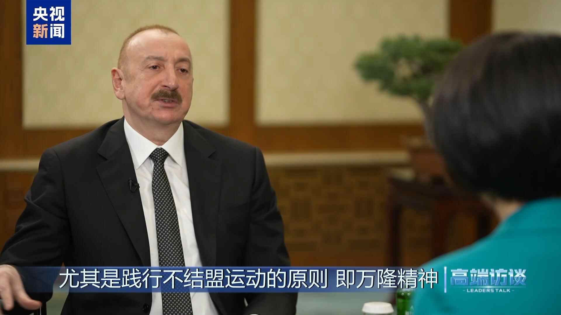 阿利耶夫:我认为我们必须积极主动。阿塞拜疆作为全球南方的活跃成员,在担任不结盟运动主席国和《联合国气候变化框架公约》第29次缔约方大会主席国期间均表明了这一态度。在阿塞拜疆担任主席国并举办的《联合国气候变化框架公约》第29次缔约方大会上,我坚定维护全球南方国家利益,就气候变化对某些国家构成的生存性威胁发出了全球南方的共同关切。我们认为中国是全球南方的领导者,我们认为在团结各国方面中国发挥着特殊的作用,尤其是践行不结盟运动的原则,即万隆精神,正好反映了你所说的内容,包括尊重主权和领土完整、不干涉他国内政、平等、多边主义,以及反对任何国家或国家集团主导等。这些内容与阿塞拜疆的立场高度契合,我们始终秉持这些原则捍卫国家利益,做国际社会积极的一员。