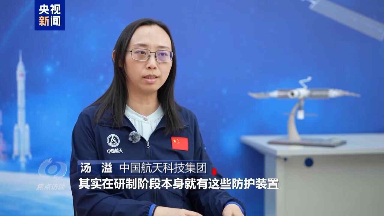 中国航天科技集团 汤溢:随着人类航天活动的增加,空间碎片环境日益恶劣,所以空间站也遭受到了微小碎片的撞击。在研制阶段本身就有防护装置,空间环境进行再认识之后又会识别一些薄弱环节,为了进一步提高这方面的能力,应对更加恶劣的空间环境,航天员会装一些防护设备,挡在外围,当空间站迎接撞击的时候就不会直接伤害到它。
