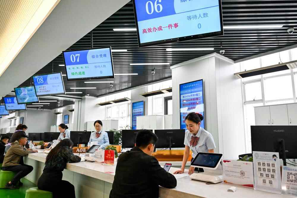 4月16日,在鄂尔多斯市东胜区政务服务中心,工作人员在办理民营企业相关业务。新华社记者 李志鹏 摄