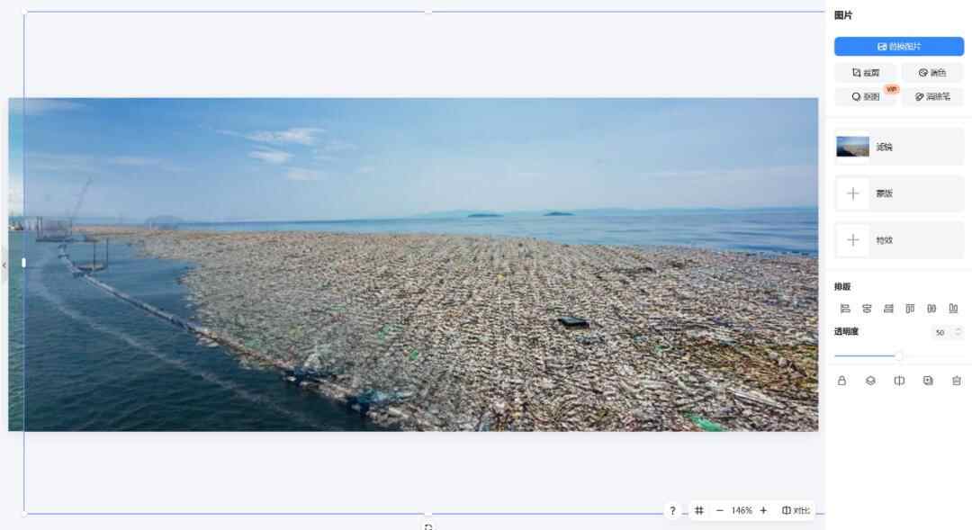 右半边的图片则属法新社所有,是鲍尔拍摄的位于洪都拉斯附近加勒比海域的垃圾带组图中的另一张。此图曾在2017年被BBC和《镜报》等媒体使用。