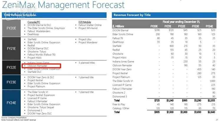 2023年,微软正忙于动视暴雪的收购案,在他们提交给法院的文件里,一份2020年贝塞斯达母公司ZeniMax的项目规划中首次出现了《上古卷轴4:湮没》复刻版的名字。