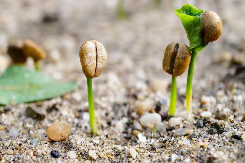 1月8日,在云南省普洱市思茅区白沙坡咖啡试验示范基地拍摄的发芽的咖啡种子。新华社记者 孙瑞博 摄