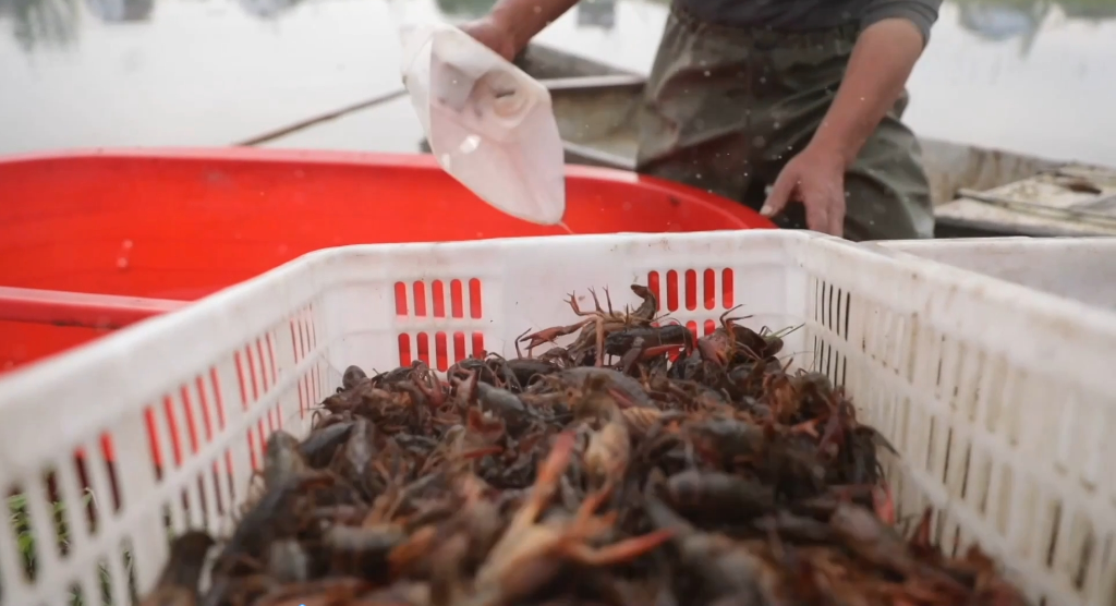 刚出水的小龙虾被立即送往分拣中心,进行质量检验和称重分级。分拣线上,分拣工岳腊春戴着橡胶手套,指尖翻飞间完成了龙虾的分级。岳腊春说,“我们是发月工资,一个月5000元,一天工作按货的多少来定。”