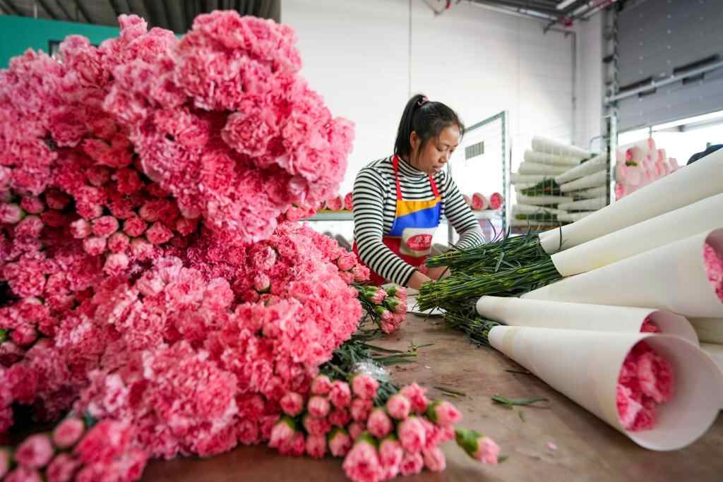 鲜花产业,已是云南特色产业体系中的鲜明代表。统计显示,云南花卉产业每年带动19万户花农户均增收5万元以上,辐射带动100多万人就业创业。今年第一季度,云南出口鲜切花9134吨、出口额2.7亿元,同比分别增长10%、48.2%。