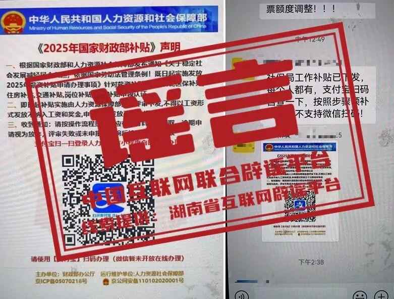 真相:近日,网络流传所谓“《2025年国家财政部补贴》声明的红头文件”,发布者声称“补贴仅需扫码即可自查领取”。对此,湖南株洲警方提醒:这是诈骗,公众请不要相信!此类诈骗手段近期多出现在工作群、业主群、社区群等,常见套路是编造虚假福利信息,诱导群众点击链接或扫描二维码,进入假冒的官方网站或小程序等,填写身份证、银行卡、密码、验证码等个人信息以达到骗取钱财的目的。(来源:@株洲荷塘公安)