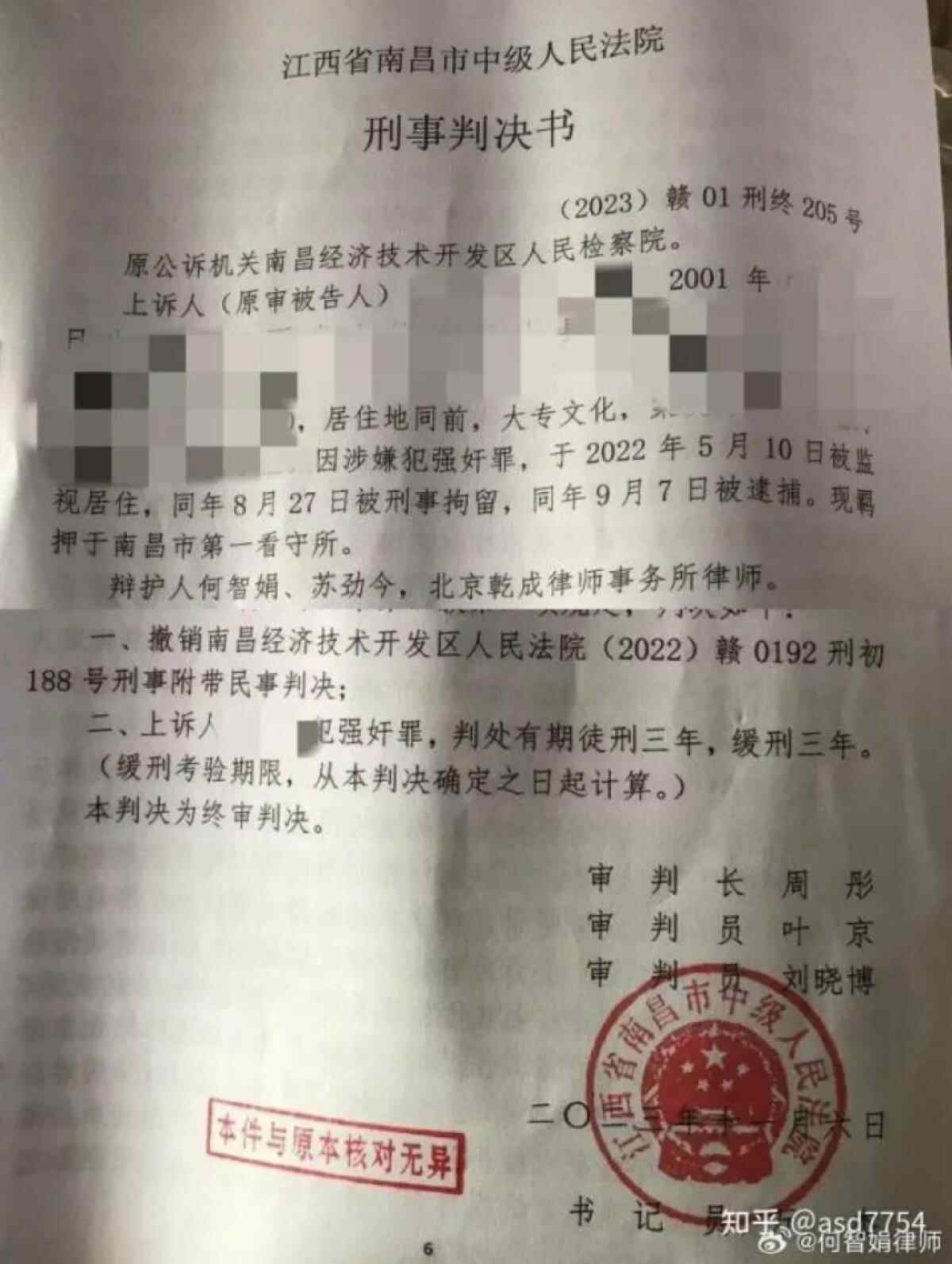 4月16日山西大同“订婚强奸案”二审宣判后,“南昌锜某某强奸案”重回人们的视线。其中,作为“南昌锜某某强奸案”辩护律师的何智娟律师便在微博发声称:“翻看了审判长答记者问,才知道(订婚强奸案)二审本有改判缓刑的机会。回想起之前辩护的南昌强奸案,当时也同样面临辩护策略的选择,不免唏嘘。”