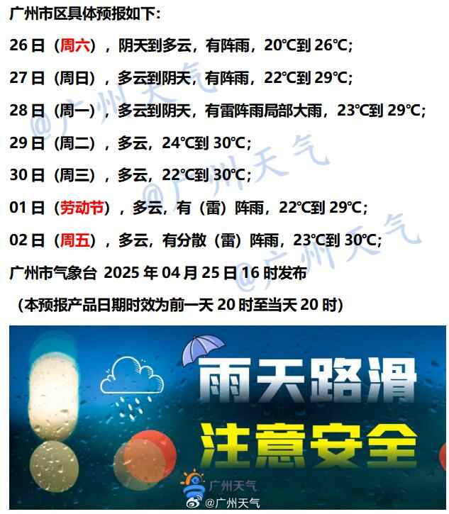 广州天气具体预报: