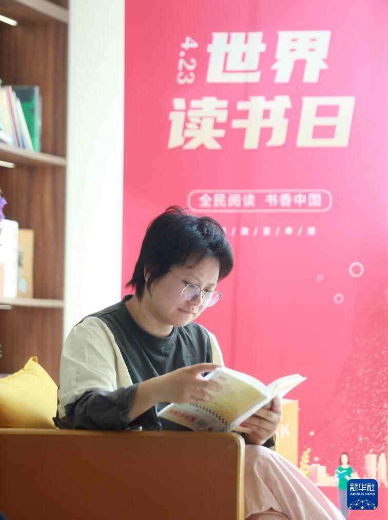 4月23日,一名读者在河北省石家庄书城阅读。
