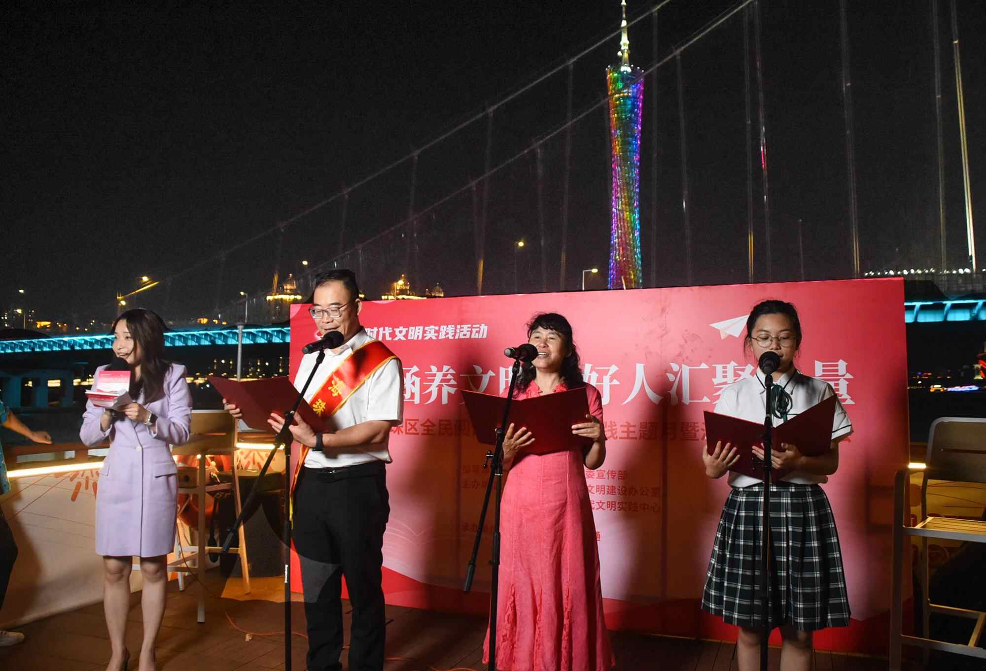 活动以“书香涵养文明 好人汇聚力量”为主题,广东演讲学会朗诵分会副秘书长谢汪洋、广州作家潘小娴,“海珠好人”代表方森东、郑銮英以及广州市绿翠现代实验学校学生代表等加入阅读分享的行列。通过“好人榜样”与青少年学生同台分享,以书籍为纽带,架起沟通桥梁,激发社会正能量。