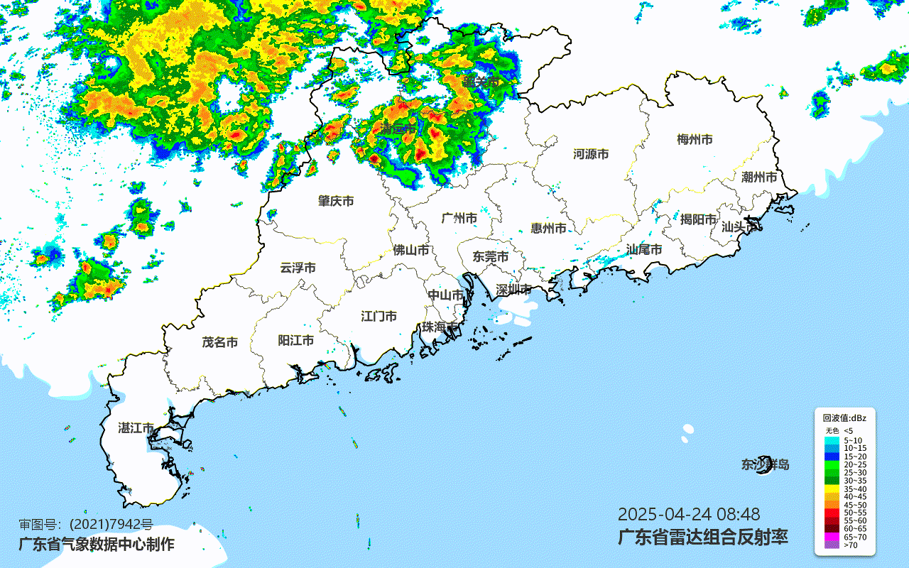 截至24日19时48分,强雷雨云团已移出广州市区,风雨有所减弱,但云浮一带仍有雷雨云团东移,从24日19时48分起,广州越秀区、天河区雷雨大风预警信号解除,同时将天河区暴雨橙色预警信号降级为黄色,越秀区暴雨黄色预警信号维持。