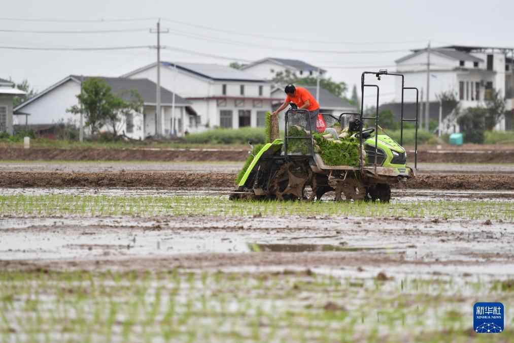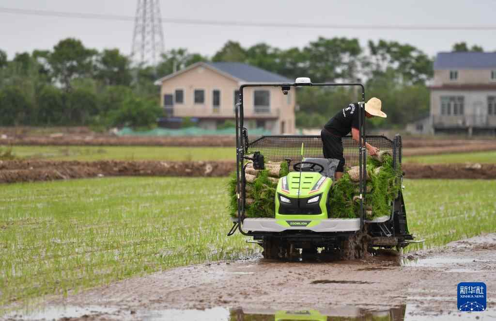 当日,十余台无人驾驶插秧机在湖南省益阳市南县南洲镇班嘴村的农田里作业。这些插秧机可实现路径规划、实时定位等智能功能,只需人工补充秧苗,在节省人力的同时,使插秧作业更加规范、高效。